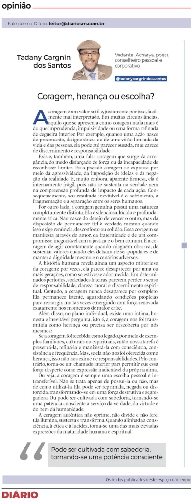 A coragem autêntica não oprime, não divide e não fere. Ela ilumina, sustenta e transforma. Quando alinhada à consciência, à ética e à lucidez, torna-se uma das mais elevadas expressões da maturidade humana e espiritual.