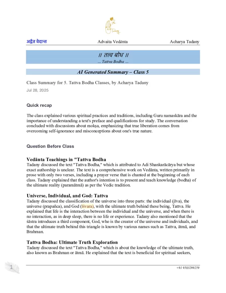 Class 5, Tattva Bodha